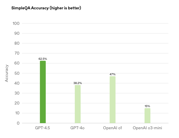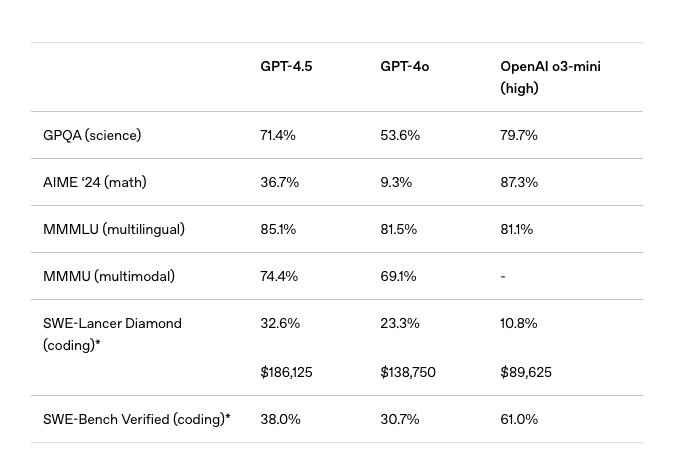 Interestingly, Altman also pointed out that GPT-4.5 isn’t designed for deep reasoning. So while it won’t dominate benchmark tests, it outperforms other models in real-world tasks—especially when it comes to understanding user intent and delivering responses that feel warmer and more human-like.
